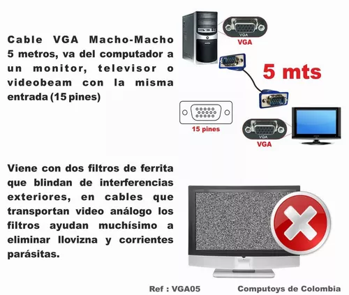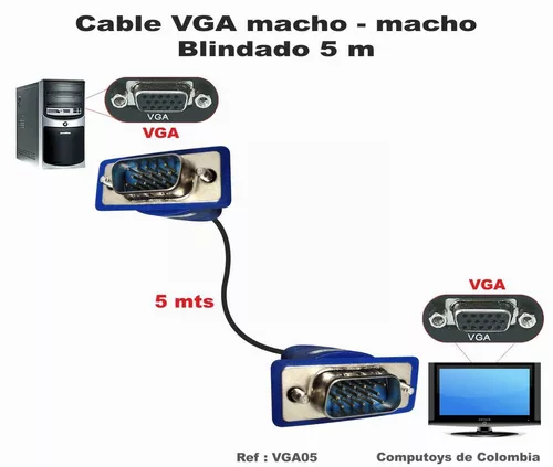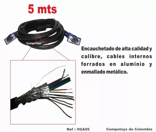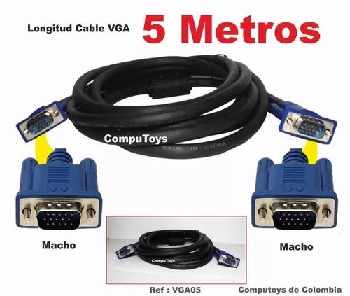 Cable VGA Macho-Macho 5 metros, va del computador a un monitor, televisor o videobeam con la misma entrada (15 pines)
